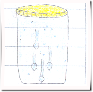 Wir bauten aus einer Sektkorkensicherung und einem Teelicht einen kleinen Herd. Wir zündeten die Kerze an und stellten eine Teelichtschale, die halbvoll mit Wasser gefüllt war darauf.