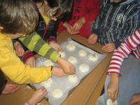 Am Martinstag haben die Kinder der 1.Klasse am Vormittag Martinsbrötchen gebacken.