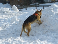 Am Dienstagnachmittag kamen 3 Lawinenhundeführer nach Pfunders in unsere Grundschule. Sie zeigten uns ihre Geräte. Sie hatten auch 3 Hunde mit Namen Franzi, Ambra und Wechta mit. Später, als sie uns in der Turnhalle alles erklärt hatten, gingen wir hinunter ins Lamprechtfeld. Im Lamprechtfeld zeigten sie uns, wie die Hunde verschüttete Leute suchen. Als wir unten ankamen, waren ein großer Hügel und ein Loch. Hans nahm ein Kind mit ins Loch. Dann ließen sie sich zuschöpfen. Die Hunde mussten sie suchen. Arla suchte als erster, Wechta als zweiter und Franzi suchte dann auch noch. Wir spielten noch ein wenig mit Wechta. Später, als alles vorbei war, gingen wir wieder in die Schule, um die Schultasche zu holen. Dann war die Schule aus. Uns hat dieser Tag besonders gut gefallen. (Veronika, Nicole, Marlene ,Tanja - 5. Klasse) |