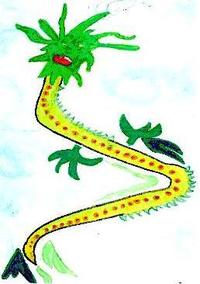 Es war einmal ein Bub, der mit seiner Familie auf einem Berg wohnte. Er hatte als Freunde nur eine kleine Schnecke, eine Eule und einen Krebs. Zu seinem Geburtstag bekam er einen schönen Stein, der 30 Kilogramm wog. Nach drei Jahren stand er am Morgen auf und sah, dass der Stein kaputt war. Als er aber dann ins Bad ging und aus der Zahnpastatube ein 1 Zentimeter großer Drache heraussprang, wusste er sofort, was geschehen war und erzählte es der Mutter. Sie meinte, er dürfe den Drachen nicht behalten, denn in der alten Hütte wäre kein Platz. Der kleine Junge aber hörte nicht auf seine Mutter und behielt den Drachen trotzdem, hielt ihn jedoch vor seiner Mutter versteckt. Eine Zeit lang ging alles gut, und es war ein guter Drache. Aber eines Tages fraß er aus Eifersucht die Freunde des Jungen, die Schnecke, die Eule und den Krebs, auf und er wuchs und wuchs und wuchs und entwickelte sich zu einem bösen Drachen. Er forderte den Buben auf, er solle ihm drei Goldkugeln bringen. Würde er nicht gehorchen, würde er die ganze Landschaft verbrennen. Der Junge hatte drei Tage Zeit. Er machte sich auch sogleich auf den Weg. Aber was fand er gleich am ersten Tag? Ein kleines Männchen versteckte sich in einem Baum und in der Hand hielt es drei Goldkugeln. Der Bub rief: „Ich habe sie gefunden, ich habe sie gefunden! Gibst du mir bitte diese Kugeln?“ Aber der Zwerg antwortete: „Wenn du mir deine Jacke gibst, bekommst du von mir die Goldkugeln.“ Das war für den Jungen kein Problem. Er zog seine Jacke aus, reichte sie dem Zwerg und nahm dafür die Kugeln. Eilig lief er nach Hause zurück und kam gerade noch rechtzeitig beim Drachen an. Er war müde und erschöpft, reichte ihm aber glücklich und zufrieden die Goldkugeln. Der Drache zog aus seiner Tasche eine Krone heraus und reichte sie dem tapferen und mutigen Jungen. Dieser setzte sich die Krone auf und wurde daraufhin König im Land, das er gerettet hatte. Der Drache wurde zu seinem Diener. Und wenn die beiden nicht gestorben sind, dann leben sie heute noch gemeinsam in ihrem Land.